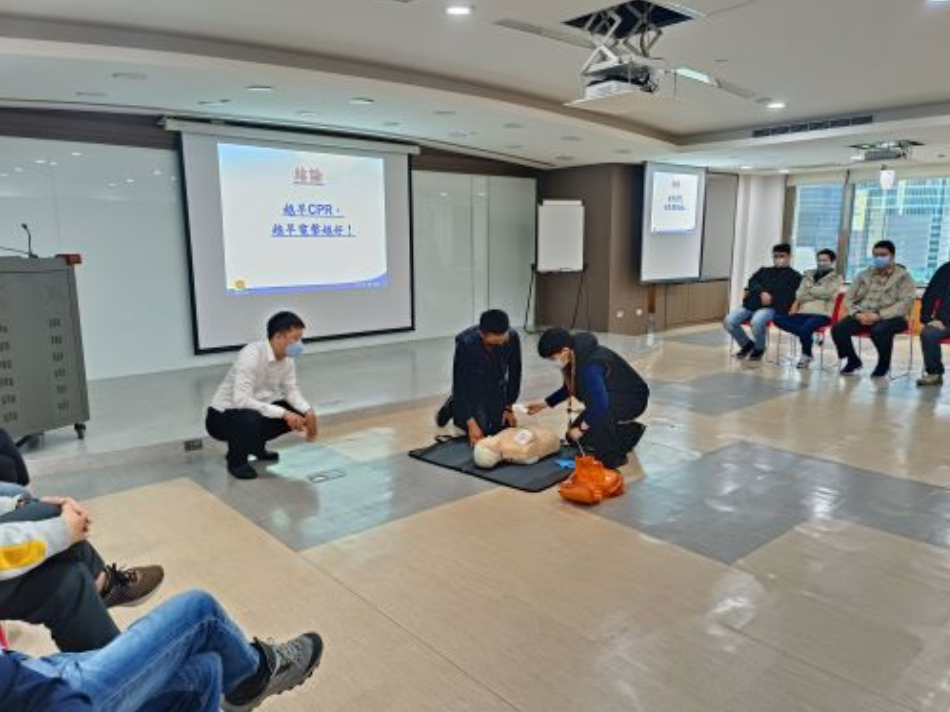 邀請專業講師開設急救課程,教授員工急救技巧與如何使用自動體外心臟去顫器,可以在緊急時刻為生命爭取黃金救援時間。