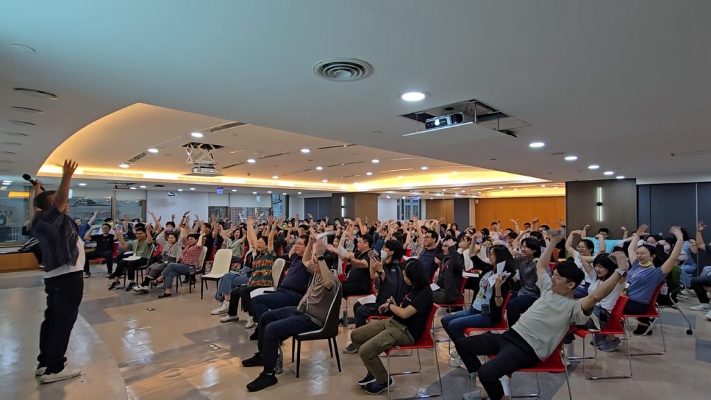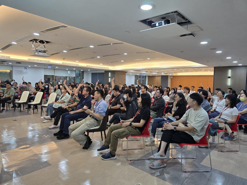 鑑於現代職場壓力普遍存在,公司特別邀請到企業講師/即興脫口秀喜劇演員–歐耶老師,與破百位同仁共同探索壓力管理的新角度,以生動有趣的方式,引導大家重新認識「壓力」並非全然負面,而是生活與工作中必要的存在,透過幽默互動與趣味表達的方式,幫助同仁學習如何轉換壓力的感受,讓緊繃的情緒能獲得舒緩。