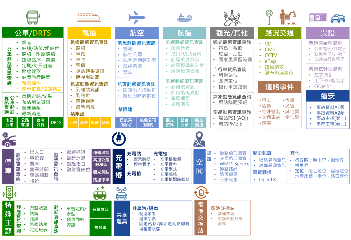 平臺協作單位:資料來源的協作單位超過200家,包含中央與地方等政府機關,以及運輸營運業者。